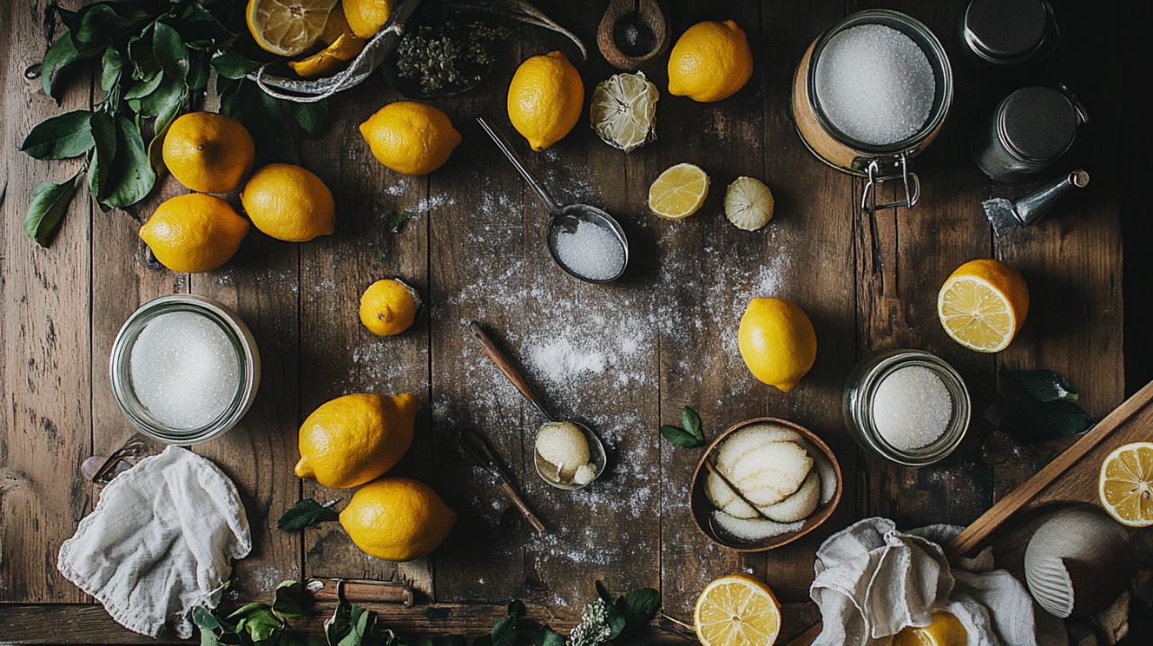 La recette du citron confit commence par une sélection minutieuse des agrumes. L'utilisation de citrons bio non traités s'avère primordiale, car l'écorce constitue la partie principale de cette préparation. Les citrons de Menton, réputés pour leur qualité exceptionnelle, représentent un choix idéal lorsqu'ils sont disponibles. Ces fruits doivent être frais, fermes et exempts de taches pour garantir une texture confite optimale. La préparation nécessite également du sucre, qu'il soit blanc raffiné ou de canne selon vos préférences, ainsi que de l'eau pour créer le sirop dans lequel les agrumes vont progressivement se transformer.